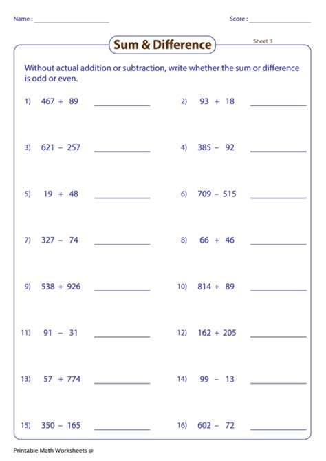 Use This Math Worksheet To Carefully Study The Sum And Difference Of Two.