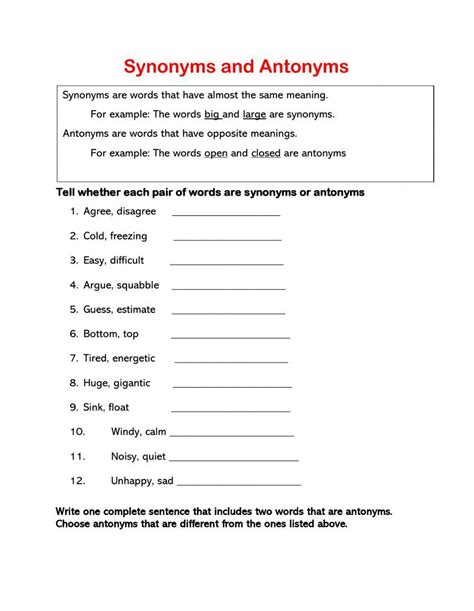 Web Ashley Assist On Synonyms And Antonyms Worksheet For Grade 8 __Full__.
