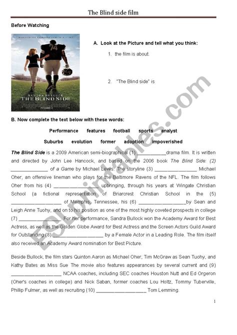 The Blind Side Worksheet. Web the blind side movie useful worksheet. The blind side final eng.