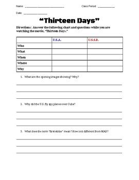 Teach with mark and elyse. About this thirteen days movie worksheet. 13 days worksheet provides questions for students to answer during the movie / film | just how close america came to a nuclear war with the.