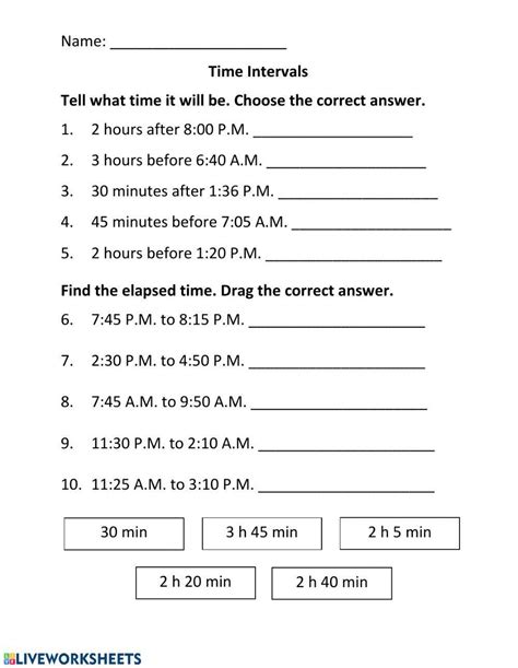 Web telling time worksheets on five minute intervals. Web time intervals worksheet to solve time interval questions id: Web in these grade 1 word problems, students are asked how much time has elapsed between two times, or what time will it be in a certain number of hours.