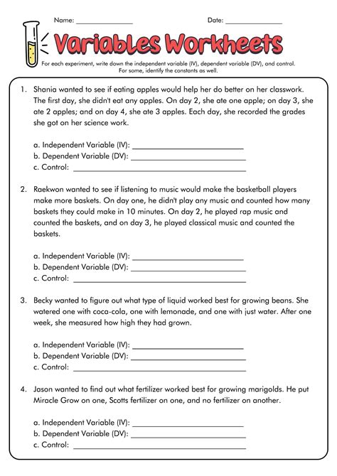 Web students define variables and write expressions to answer questions with unknown amounts. Web learn what a variable is in science experiments and the different types of variables including independent, dependent and controlled. This printable or digital worksheet on the steps of the scientific method is packed with problem solving and critical thinking examples and problems.